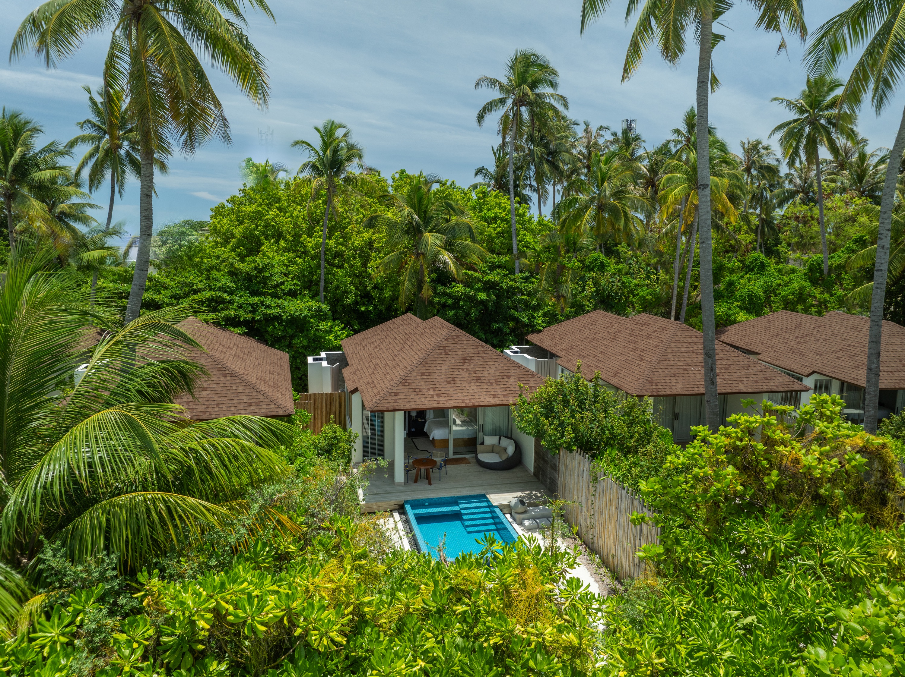 Set on the natural island of Fares on the western edge of Baa Atoll’s UNESCO Biosphere Reserve, Avani+ Fares Maldives Resort is ideal for festival crews, solo travelers and couples, with a mix of Beach Pool Villas and Over Water Villas, plus Two and Four-Bedroom Pavilions for groups of up to eight. For those going all in, the resort also offers two 3,089 square foot Two-Bedroom Overwater Pool Residences and a 3,961 square foot Three-Bedroom Overwater Pool Residence, each with an oversized terrace, infinity pool and seamless indoor-outdoor dining made for a private after-party. For sundowners with a local twist, the resort’s Ambaa Adventure sees a traditional dhoni cruise the lagoon, delivering handcrafted cocktails and mocktails direct to guests’ overwater pool decks.